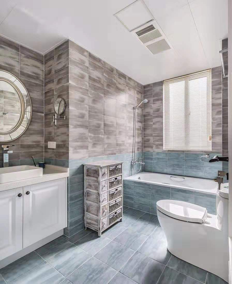 次衛(wèi)采用藍(lán)灰色的仿古磚結(jié)合,呈現(xiàn)出舒適的色調(diào)以及獨(dú)具風(fēng)格的空間感覺。