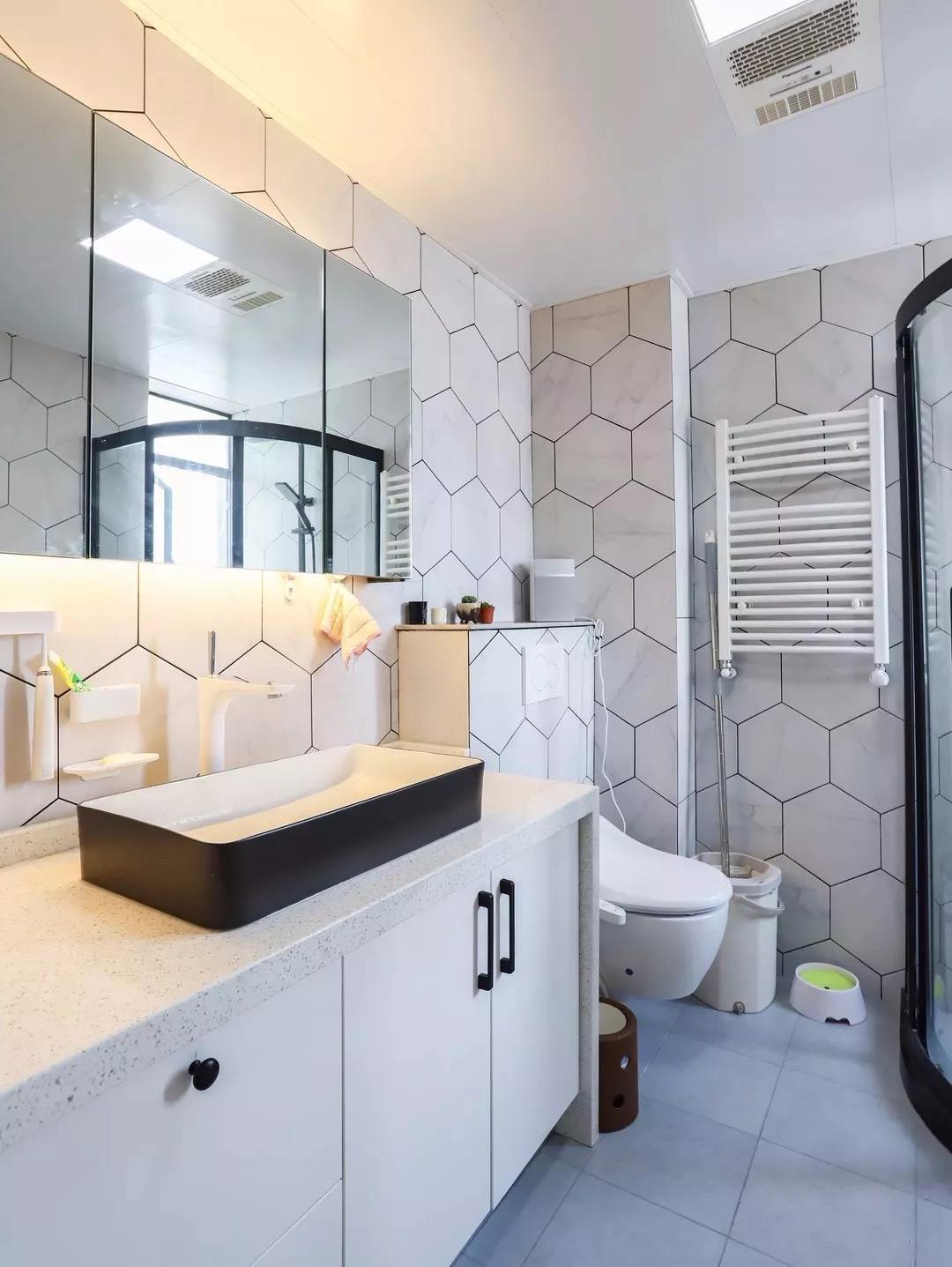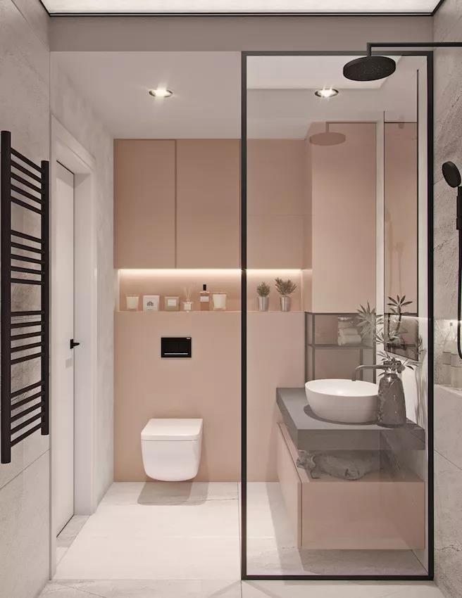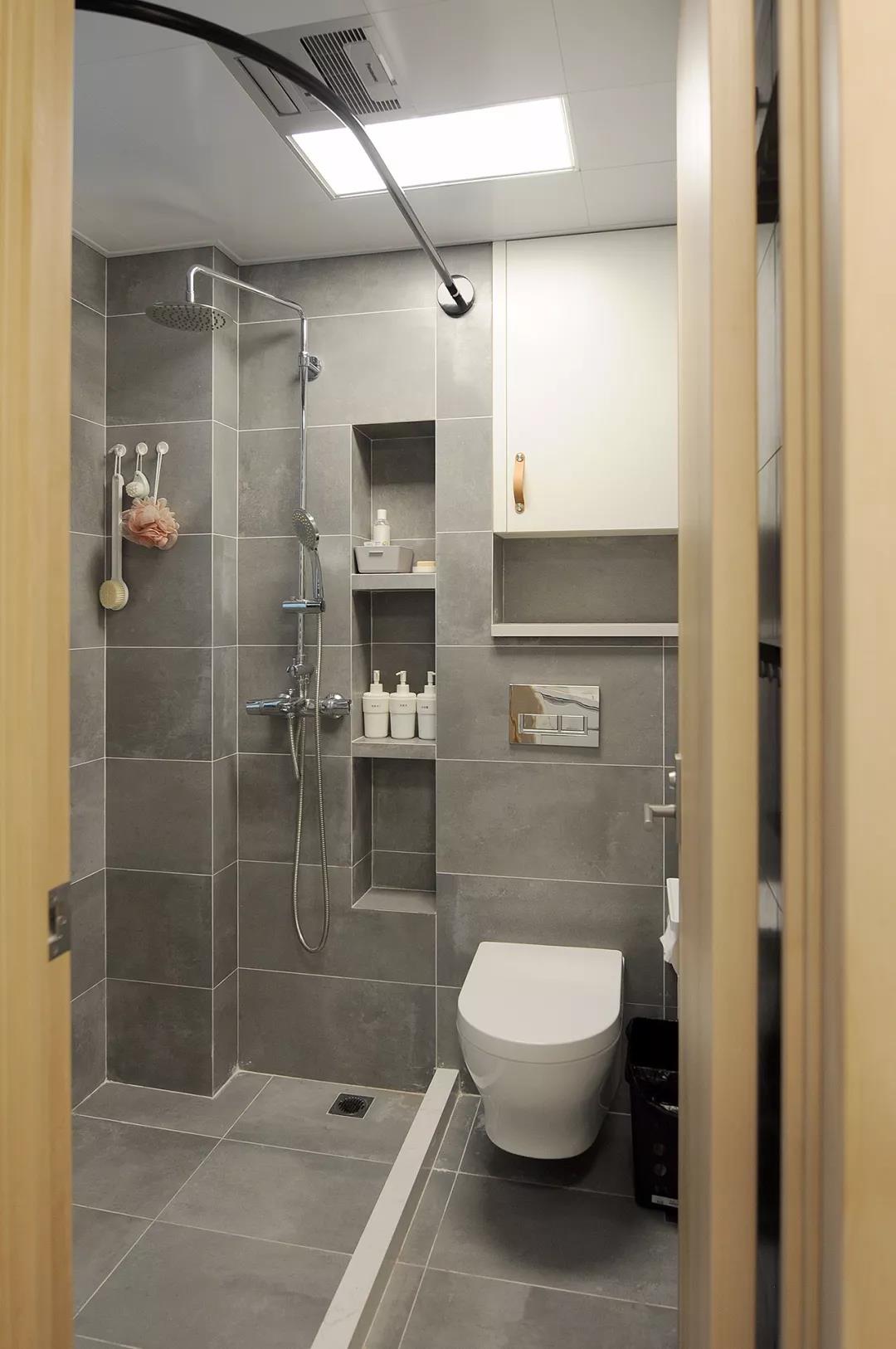 馬桶后方的墻面整體作品,讓空間更加簡(jiǎn)潔美觀,提升空間的和諧與設(shè)計(jì)感。