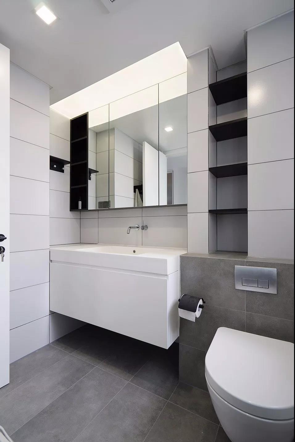 壁掛式的馬桶,需要在后方的墻面安裝水箱與管道,因此會(huì)凸出部分的墻面,這樣就會(huì)形成一個(gè)小矮墻,而這個(gè)小矮墻也可以成為擺放紙巾、衛(wèi)浴用品的好地方了。